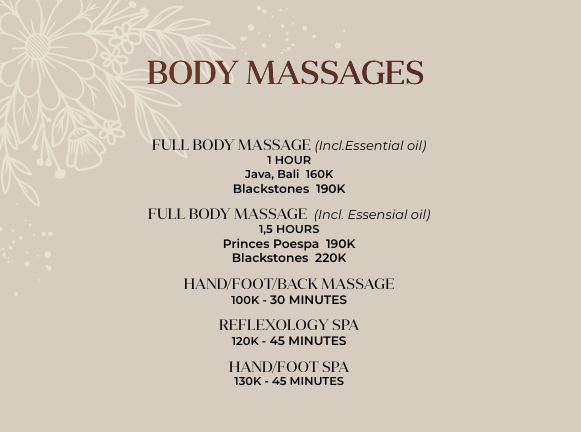 :: Price List :: Massages